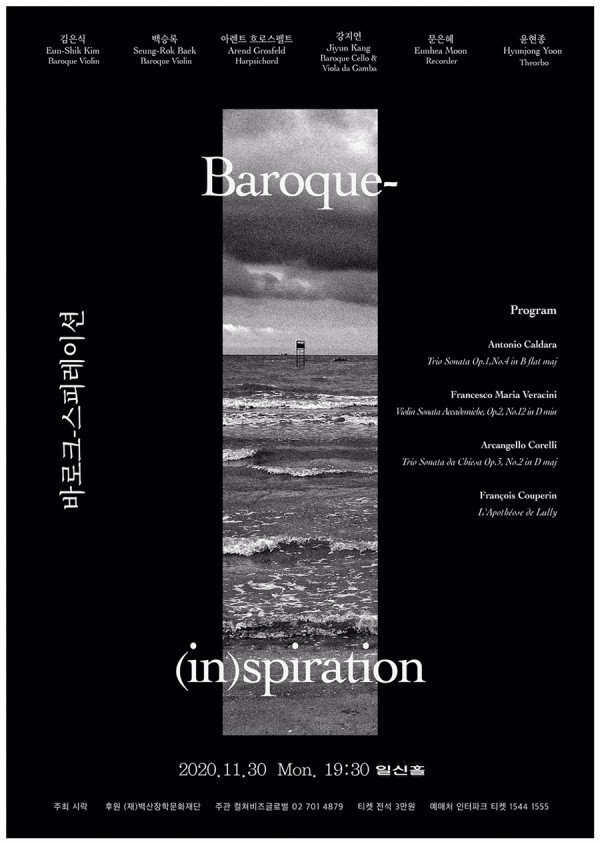Baroque Violin 김은식, 백승록, Harpsichord 아렌트 흐로스펠트, Viola da gamba 강지연, Theorbo 윤현종